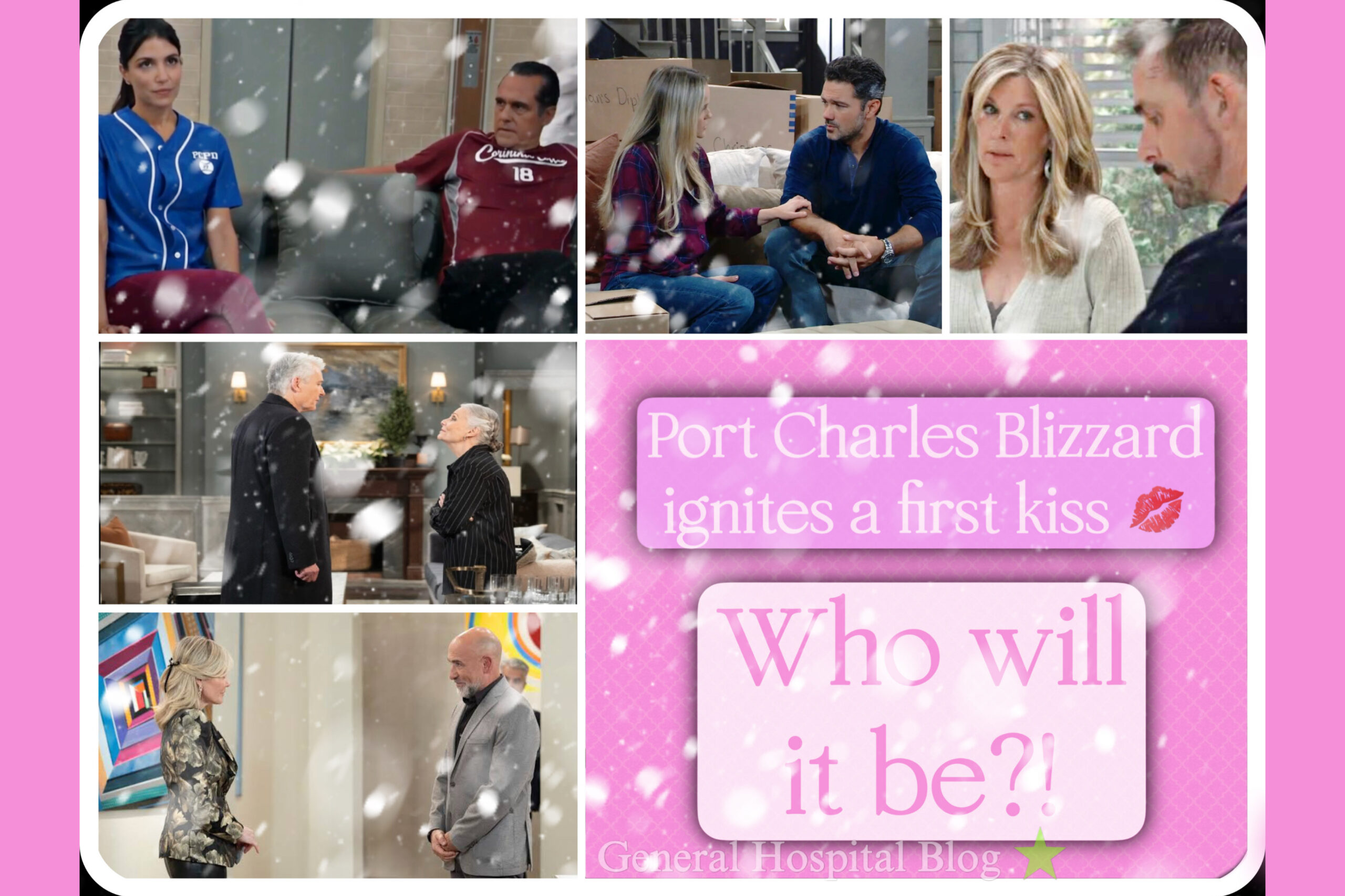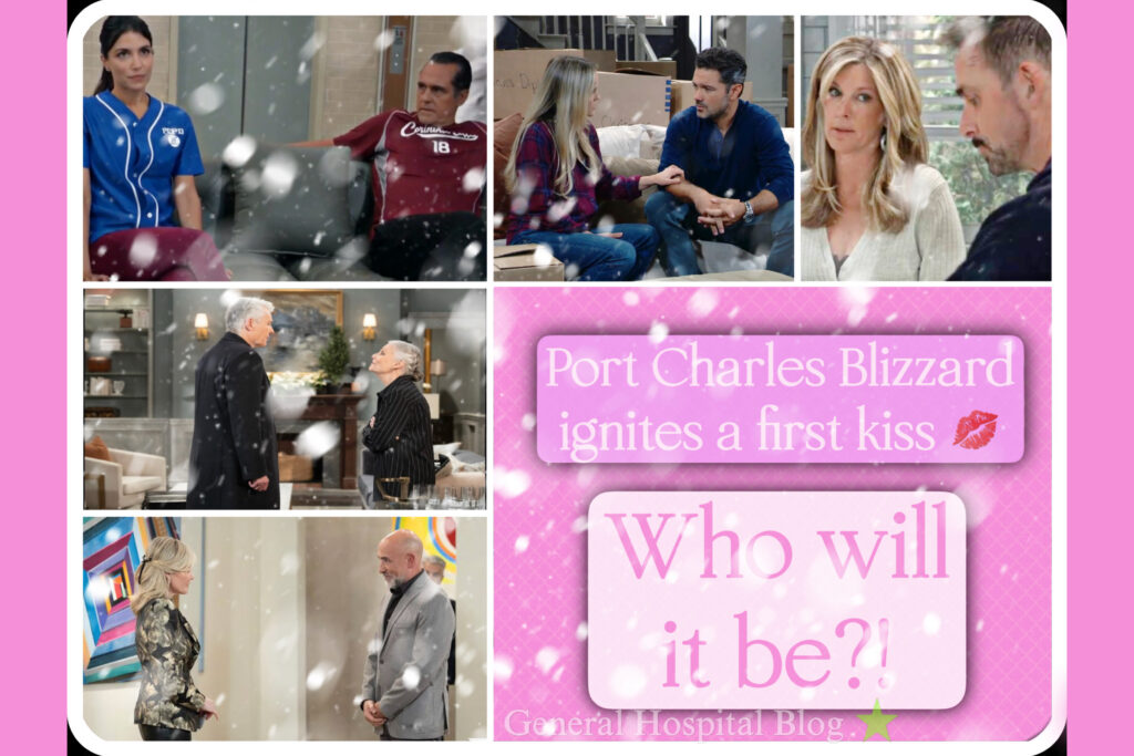 A Port Charles blizzard ignites a first kiss?! Inclement weather conditions and close quarters are the driving force behind when a potential couple shares a kiss. This week, a blizzard blasts Port Charles and forces people together- or apart, however you want to look at the situation.